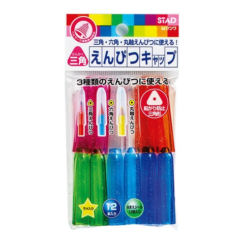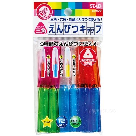 鉛筆キャップ STAD 三角えんぴつキャップ クツワ 文具 小学生 学校 子供 入学 えんぴつ キャップ ふた 汚れ 芯折れ防止 12本入り 日本製スペック