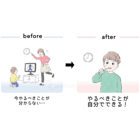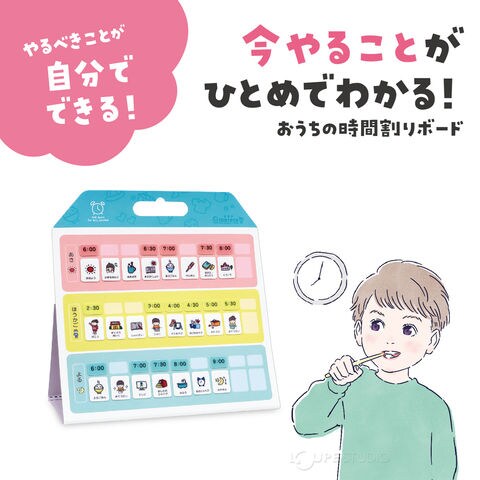 おうちで過ごす時間、テレビやゲームでダラダラして時間をあまり気にしない!言われるまでやらない!そんな悩みを解決します。いつまでに何をやらなければいけないかが明確になり、やるべきことがすすんででき、時間感覚も身に付いていきます。