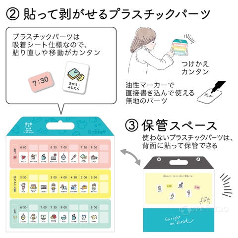 おうちの時間割りボード ライト スタンド 壁掛け 入学準備 小学校 学校 持ち物 用意 習慣 時間感覚 自分で やること 見える化 はってはがせるスペック