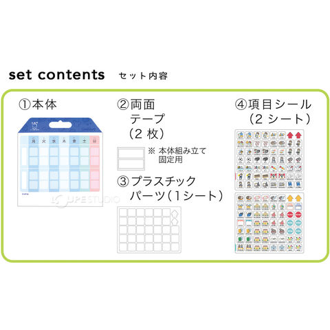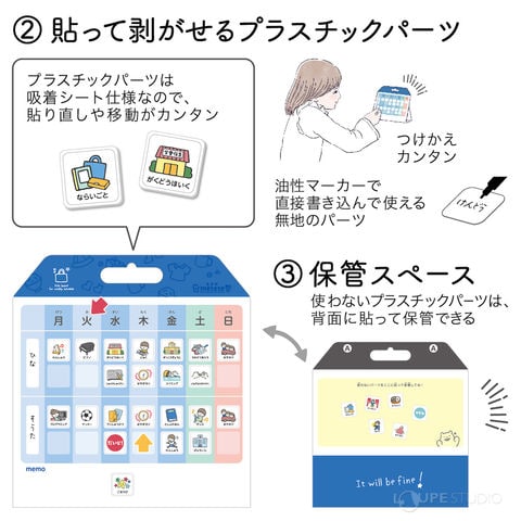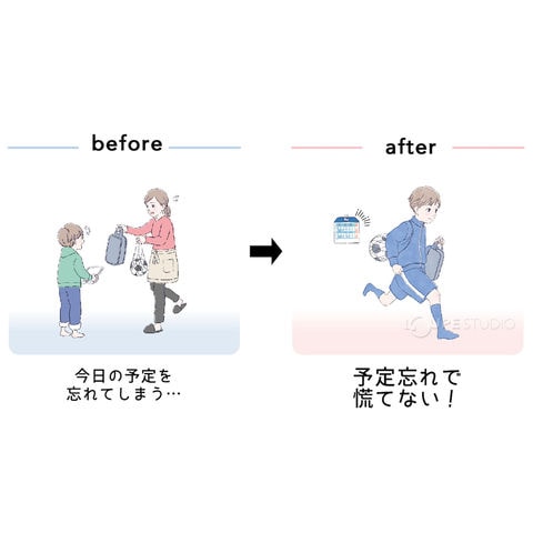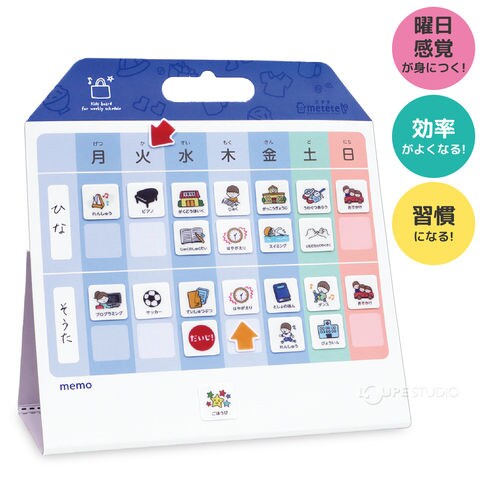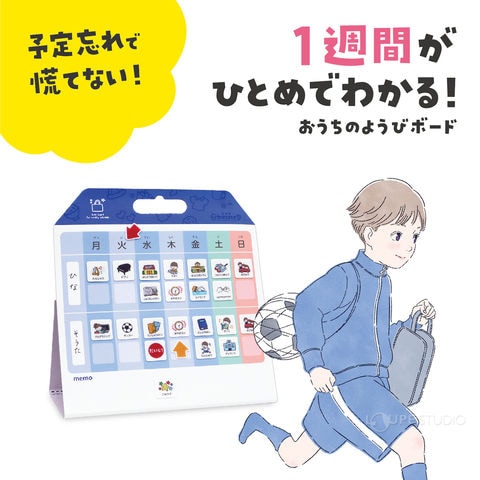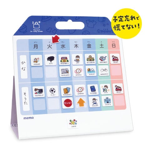 カレンダーに予定を書き込んでもお子様は意識しにくく、予定や準備を忘れる!ママも家族全員の予定管理は大変!そんな悩みを解決します。曜日ごとの予定をしっかり把握できるので、事前の準備や行動ができるようになり、曜日感覚も身に付いていきます。