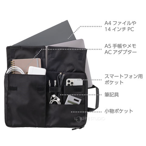 Dr.ion マルチワークケースA4 バッグインバッグ 小物 収納 PC タブレット ケース 仕分け ファスナー メンズ レディース 持ち手付き 携帯 筆記用具 スペック