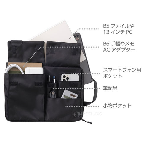 Dr.ion マルチワークケースB5 バッグインバッグ 小物 収納 PC タブレット ケース 仕分け ファスナー メンズ レディース 持ち手付き 携帯 筆記用具 スペック
