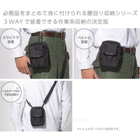 - ベルトに通す・カラビナで付ける・斜め掛けの3WAYで使用可能
