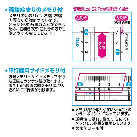 定規 17cm ものさし 文具 文房具 測る 測定 長さ DIY 図工 工作 事務用品 学習 勉強 学生 メタクリル直線定規スペック