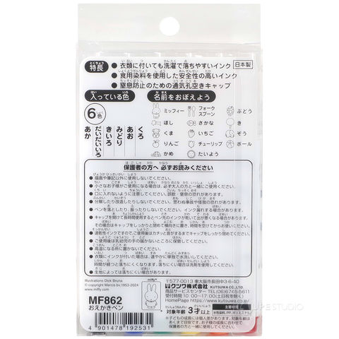 おえかきペン ミッフィー miffy ペン マーカー 水性 お絵かき 文具 子ども 子供 キッズ 幼児 キャラクター 日本製 水で落とせる 幼稚園 保育園 クツワ 6色入りスペック