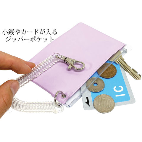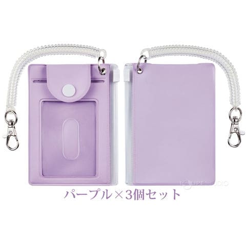 小銭入れ付 パスケース 3個セット 定期入れ 小学生 通学 男の子 女の子 入学準備 文具 お金入れ ブルー パープル 日本製 クツワ のびるチェーン付き 落ちにくい ICカード ICOCA PITAPA SUICA KUTSUWAスペック