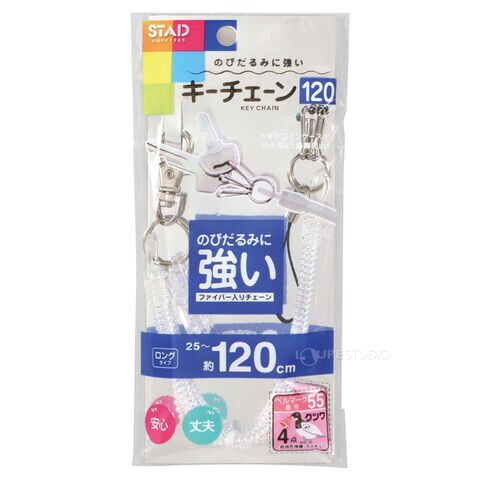 キーチェーン120 クリア クツワ 文具 のびるチェーン ロングタイプ カギ 鍵 携帯 ストラップ付き キーホルダー 子供 大人 学校 安心 丈夫 持ち歩き KUTSUWA