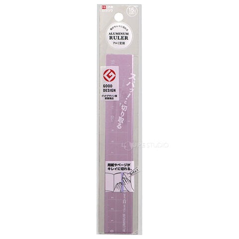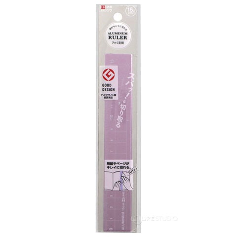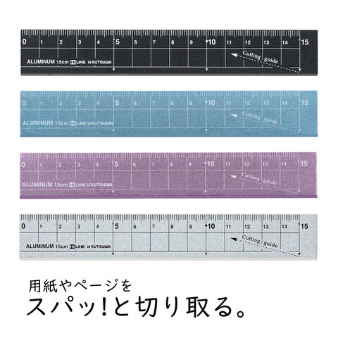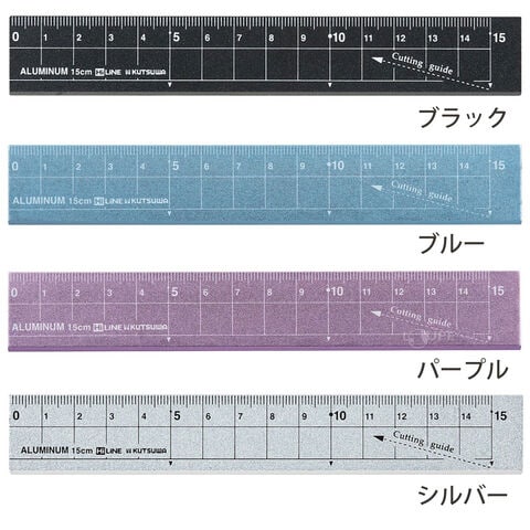 アルミ定規 15cm クツワ ものさし 紙 切る 学校用 文具 長さ 測る 端目盛り 小学生 算数 丈夫 ブラック ブルー パープル シルバー KUTSUWA