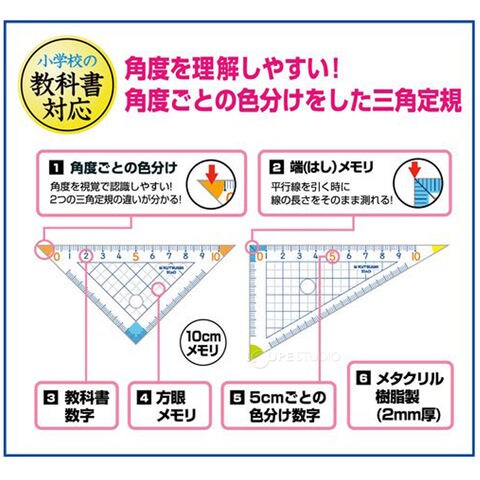 算数 三角定規 10個セット クツワ 学校用 文具 長さ 角度 測る 小学生 入学準備 算数 授業 学習 勉強 学校教材 小学校 教科書対応 KUTSUWAスペック