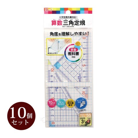 算数 三角定規 10個セット クツワ 学校用 文具 長さ 角度 測る 小学生 入学準備 算数 授業 学習 勉強 学校教材 小学校 教科書対応 KUTSUWA