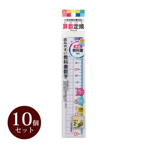算数 定規15cm 10個セット クツワ 学校用 ものさし 文具 長さ 測る 小学生 入学準備 授業 学習 勉強 学校教材 小学校 教科書対応 KUTSUWA