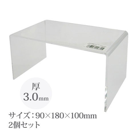 アクリル製コの字型ディスプレイ 縦90×横180×奥行100×厚3.0mm 2個セット Orions 共栄プラスチック