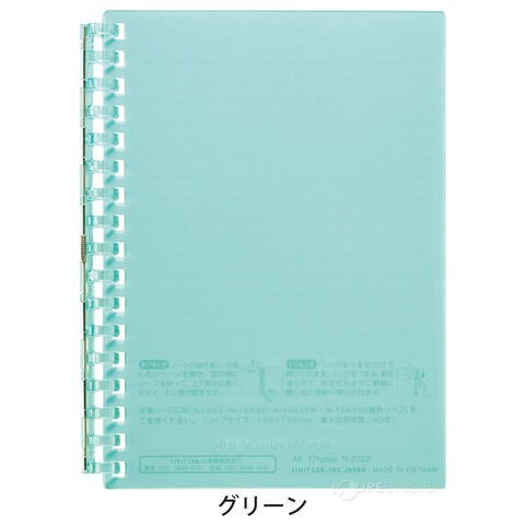 | 材質 | 表紙/ポリプロピレン(生地厚0.5mm)、とじ具/ポリカーボネート、リーフ/上質紙 |