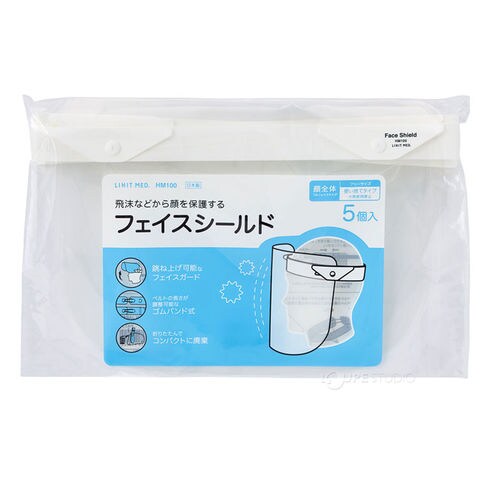 フェイスシールド フェイスガード 5個入 透明 飛沫感染予防 顔 保護 防護 跳ね上げ サイズ調整 使い捨て 軽量 日本製 学校 医療現場 介護施設 オフィス マスク リヒトラブスペック