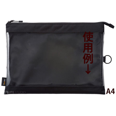 クリヤーケース A4 ブラック クリア ポーチ 小物入れ 収納 ケース 持ち運び 文具 リヒトラブ 中身が見える 整理整頓 生活雑貨 ファスナー 吊り下げリング ファスナーポケット付き LIHIT LAB F-7575