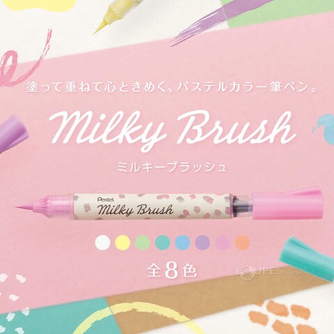 ぺんてる Pentel ミルキーブラッシュ Milky Brush 8色セット 水性顔料スペック
