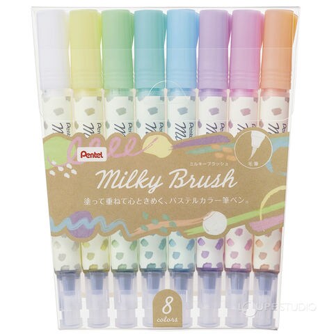 ぺんてる Pentel ミルキーブラッシュ Milky Brush 8色セット 水性顔料