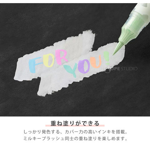 隠ぺい力の強いインキを採用したパステル調の筆ペン。手書きイラスト、POP作りに最適