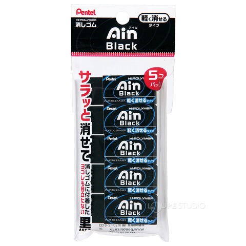 ぺんてる Pentel Pentel Ain 消しゴム 軽く消せるタイプ ブラック 小 5個パック