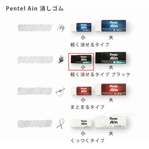 ぺんてる Pentel Pentel Ain 消しゴム 軽く消せるタイプ ブラック 小 5個パックスペック