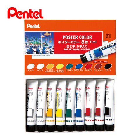 ポスターカラー 8色セット白2本入
