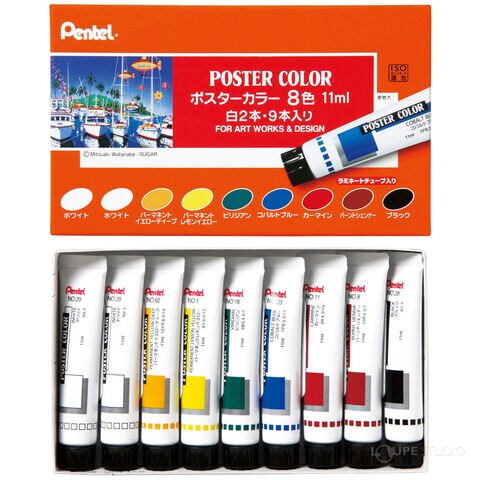ポスター・デザイン画などを紙に描くのに適した不透明水彩えのぐです。