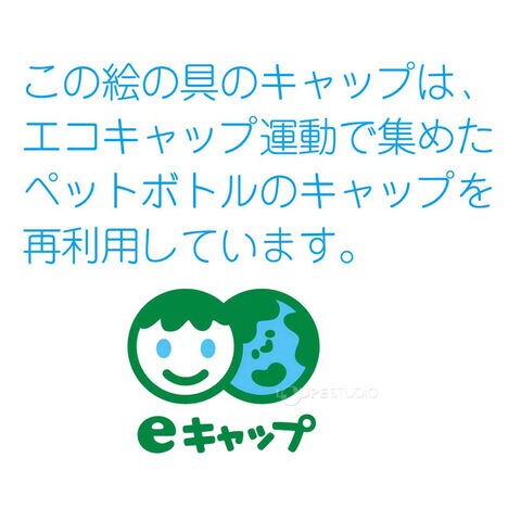 材質キャップ/再生PP、チューブ/PE・アルミ、中仕切/再生紙(8色)・PS(12色)、箱/再生紙、えのぐ/顔料・体質顔料・水溶性糊料・安定剤・水
