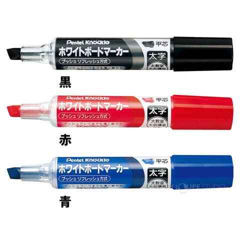 ぺんてる Pentel ホワイトボードマーカー ペン マーカー 黒 平芯 太字 文具 文房具 事務用品 ノックル パック入り 赤 青 会議 ミーティング 学校