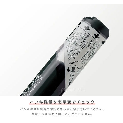 機構 生インキ、プッシュリフレッシュ方式(後部プッシュ式)、キャップ式(キャップ安全性/ISO規格適合)