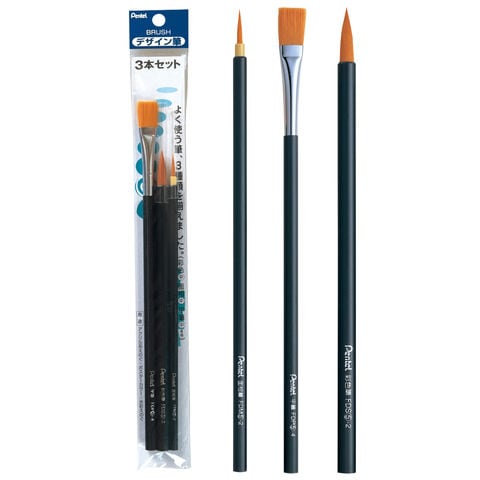 ぺんてる Pentel デザイン筆 3本セット パック入り 筆 絵具 ふで 絵の具用品 画材 小学生 図工 美術 学校 教材 夏休み 自由研究
