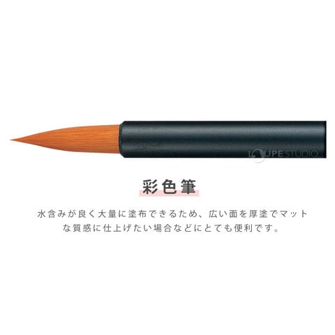 独自製法の特殊毛材を使った、まとまりが良く、耐久性に優れた穂先のデザイン筆。デザインから絵手紙まで幅広く使え、アクリル系えのぐも使えます。