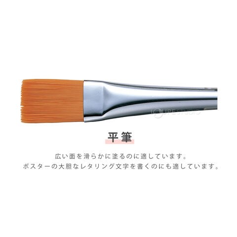 独自製法の特殊毛材を使った、まとまりが良く、耐久性に優れた穂先のデザイン筆。デザインから絵手紙まで幅広く使え、アクリル系えのぐも使えます。広い面を平滑に塗るのに適しています。