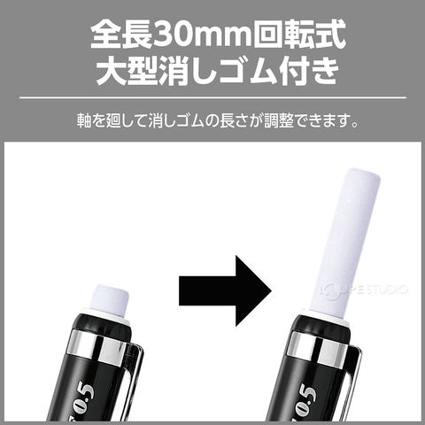 | 機構 | ノック式(繰り出し式大型消しゴム付き) |