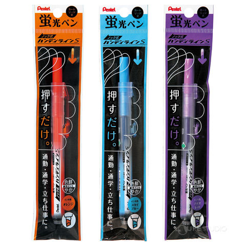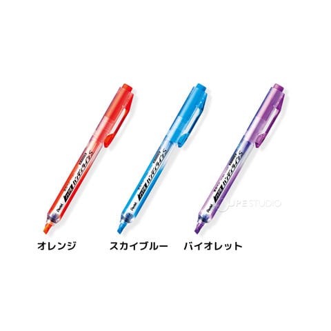ぺんてる Pentel 蛍光ハンディラインS ノック式 蛍光ペン マーカー 水性 オレンジ スカイブルー バイオレット 文具 文房具 事務用品 中学生 線引き スペック