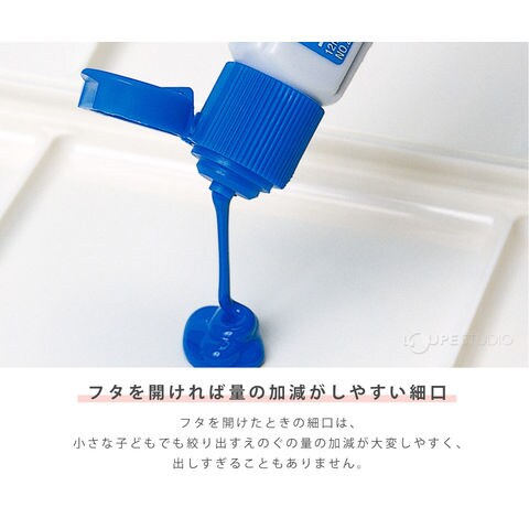 キャップは片手でも開け閉めできるワンタッチキャップです。量の加減がしやすい細口+ソフトチューブ。