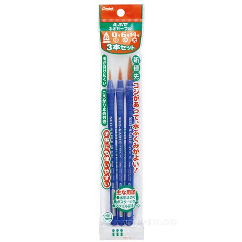 ぺんてる Pentel 絵筆 絵の具 筆 パック入り ぺんてるえふでネオセーブル 3本セット 図工 工作 美術 学校 教材 文具 小学生 夏休み 自由研究