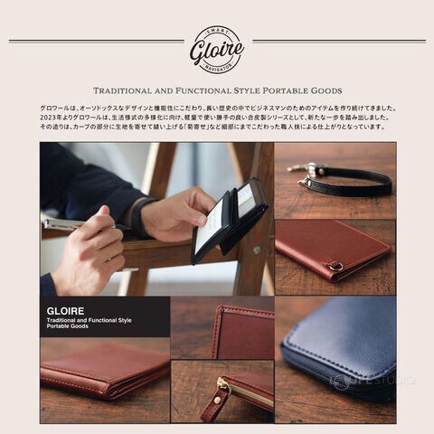 カードケース 小銭入れ付 2個単位 グロワール ファスナーポケット付き ブラック ブラウン ネイビースペック