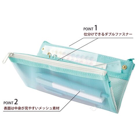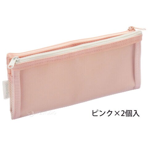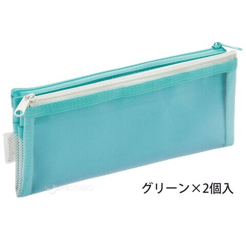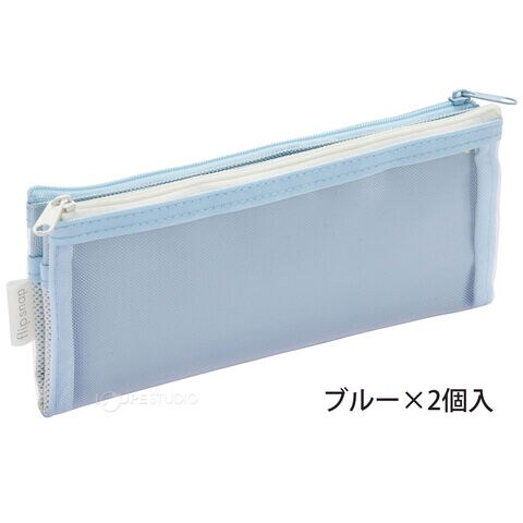フリップスナップ ペンケース 2個単位 ブルー グリーン グレー ピンク イエロー ダブルファスナー 仕分け メッシュ 半透明 Raymay レイメイ藤井スペック