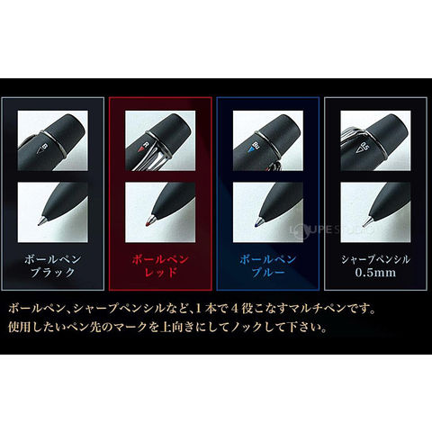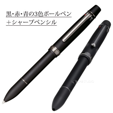 黒・赤・青の3色ボールペン+シャープペンシルをひとつのボディに搭載した多機能筆記具です。