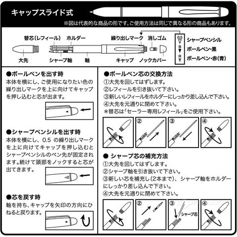 | 仕様 | 芯径/0.5mmHB 芯色/油性ブラック・レッド・ブルー ボール径/0.7mm 替芯/18-0103 替消しゴム/24-0011-205 |