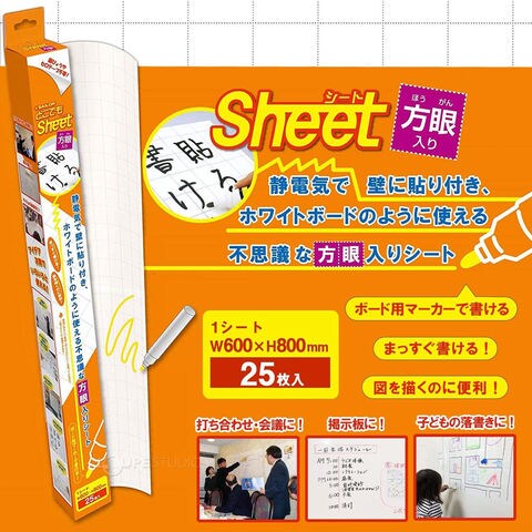 - 静電気で壁などの平面に貼り付き、ホワイトボードのように使える不思議な携帯できるシートです。
