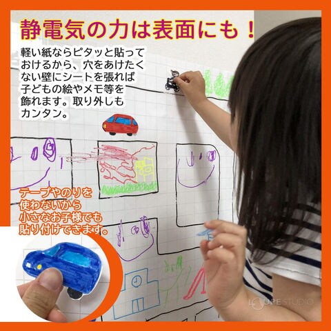 - 静電気の力で貼り付くので、画鋲やセロハンテープは不要です。