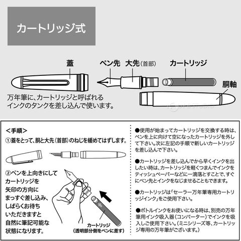 万年筆 セーラー SAILOR インク 万年筆用 カートリッジインク 交換 日本製 記念品 お祝い プレゼント ギフト 黒 赤 青 セーラー万年筆スペック
