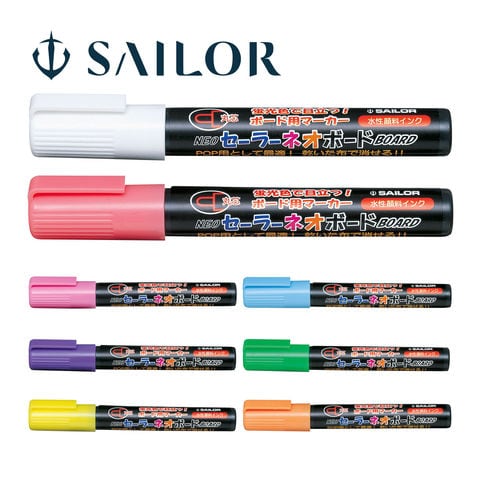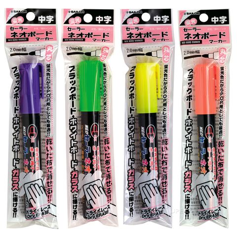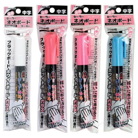 ボードマーカー 蛍光色 ネオボードマーカー 中字/丸芯 パック ブラックボード ホワイトボード ガラス 看板 店舗 POP お絵かき イラスト セーラー万年筆スペック