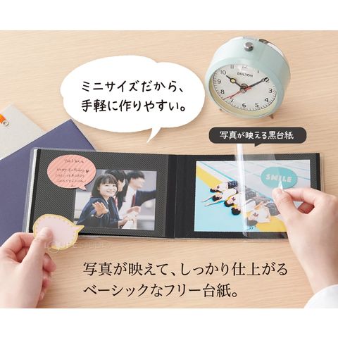 写真やメッセージを貼るだけで仕上がる、ミニサイズのフリー台紙アルバム。写真が映えて、しっかり仕上がるベーシックな黒台紙(フリー台紙)。