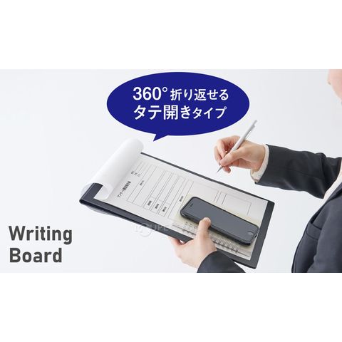 360度折り返し可能なタテ開きタイプの表紙付クリップボード。