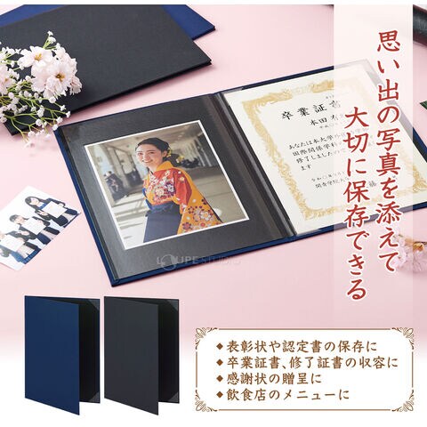 大切な賞状や認定証を、思い出の写真とともにコンパクトに保護します。