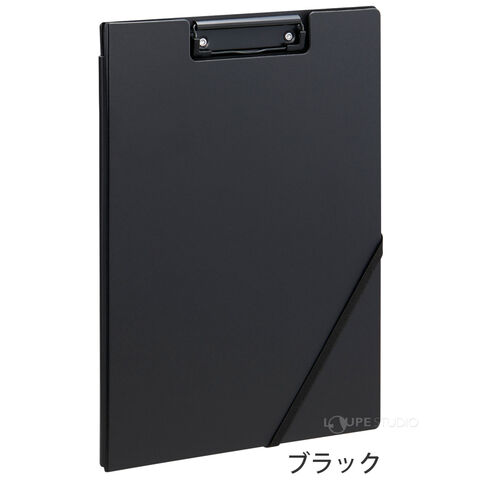 360度折り返し可能な表紙付クリップファイル。不意な開きを防止するゴムバンド付。(ゴムバンドは取り外し可能)