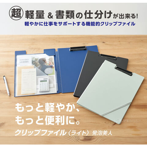 軽やかに仕事をサポートする機能的クリップファイル。表紙は軽くて丈夫な環境にも優しい3層発泡素材を採用。