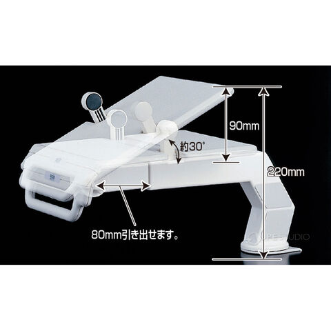 ホルダー部分は360度回転し、手前に25cmまで引き寄せられ、角度は約30度傾斜できるダブル・アクション設計です。